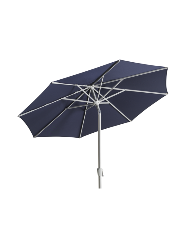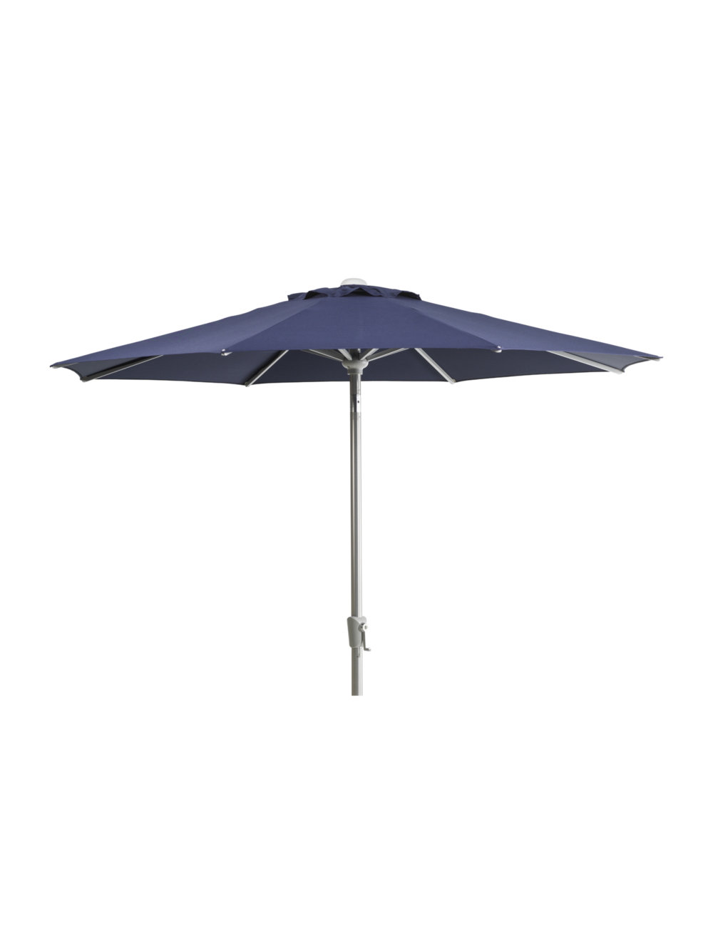 Abriola har en silverfärgad aluminiumstång i två delar med en diameter på 48 mm. Stången är utrustad med en vev och en automatisk tiltfunktion, vilket gör det enkelt att vinkla parasollen. Parasollens tak är tillverkat av 250-grams lösningsfärgat tyg, komplett med en ventilationsöppning, och stöds av 8 ribbor.