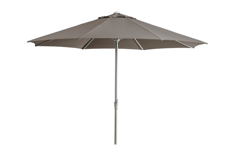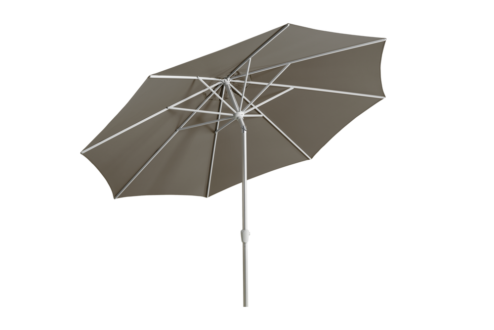 Abriola har en silverfärgad aluminiumstång i två delar med en diameter på 48 mm. Stången är utrustad med en vev och en automatisk tiltfunktion, vilket gör det enkelt att vinkla parasollen. Parasollens tak är tillverkat av 250-grams lösningsfärgat tyg, komplett med en ventilationsöppning, och stöds av 8 ribbor.