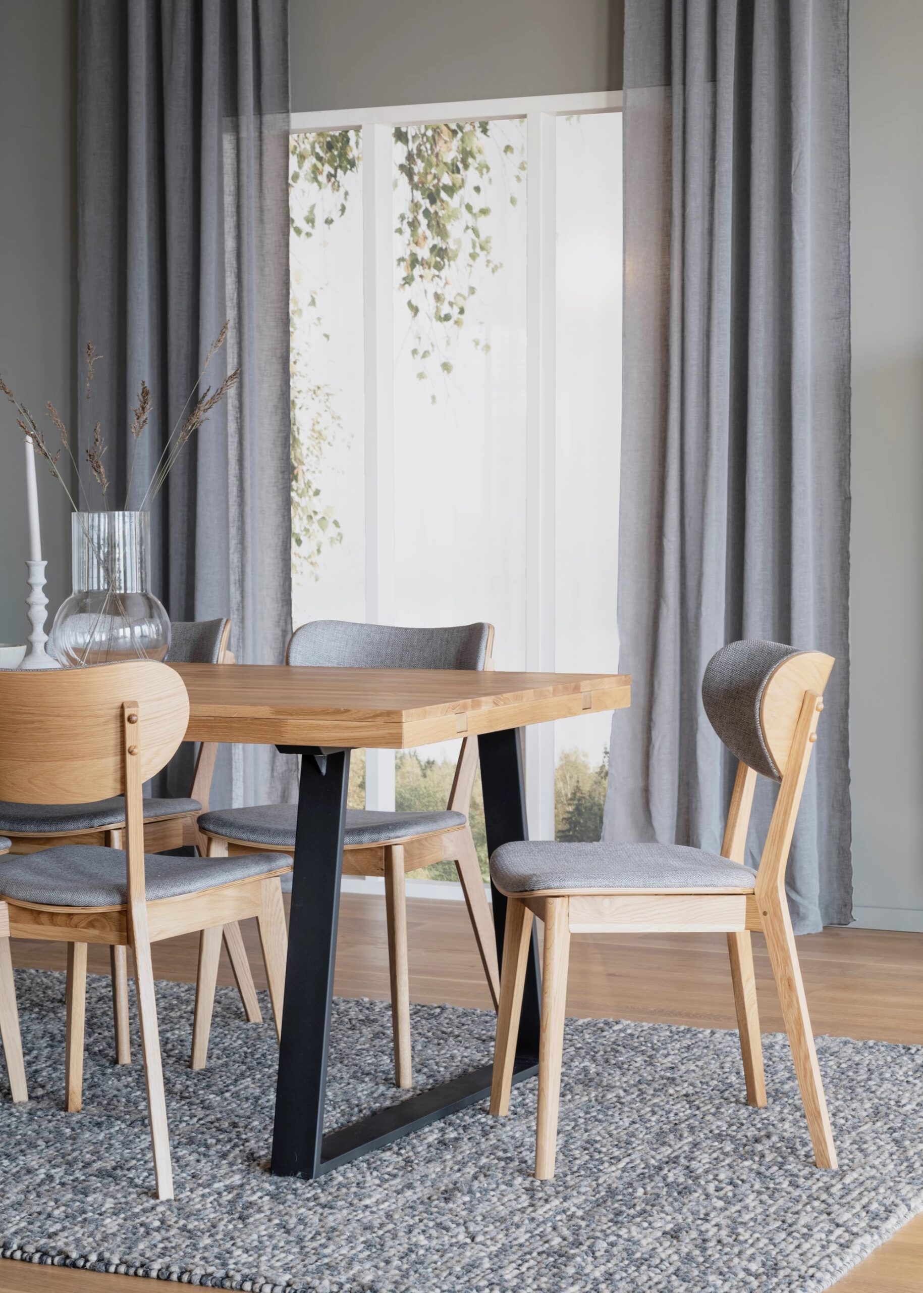 Brooklyn matbord i längden 170 cm med bordsskiva i lackad ek och med svarta U-ben i pulverlackad metall med sandstruktur. Bordsskivan är tillverkad i massiv, fingerskarvad, europeisk lackad ek. Skivan har en lätt borstad finish och kan kompletteras med 1 eller 2 tilläggsskivor a 50 cm. Matbordet ingår i den flexibla Brooklyn-serien - du kan själv genom tre enkla val utforma ditt matbord som just du vill ha det - välj färg/utförande, storlek och typ av underrede. I den breda Brooklyn-serien ingår även förvaring, soffbord och tv-bänk - samtliga delar är FSC-certifierade.