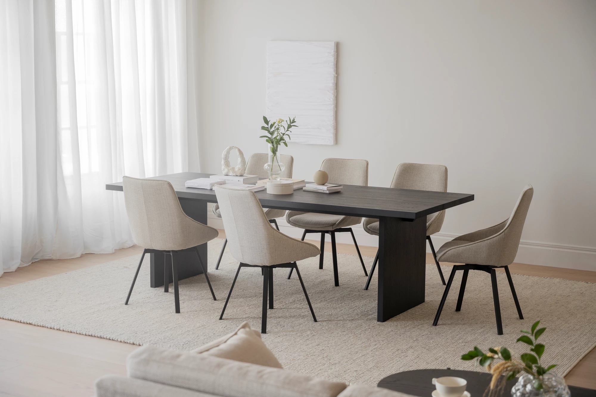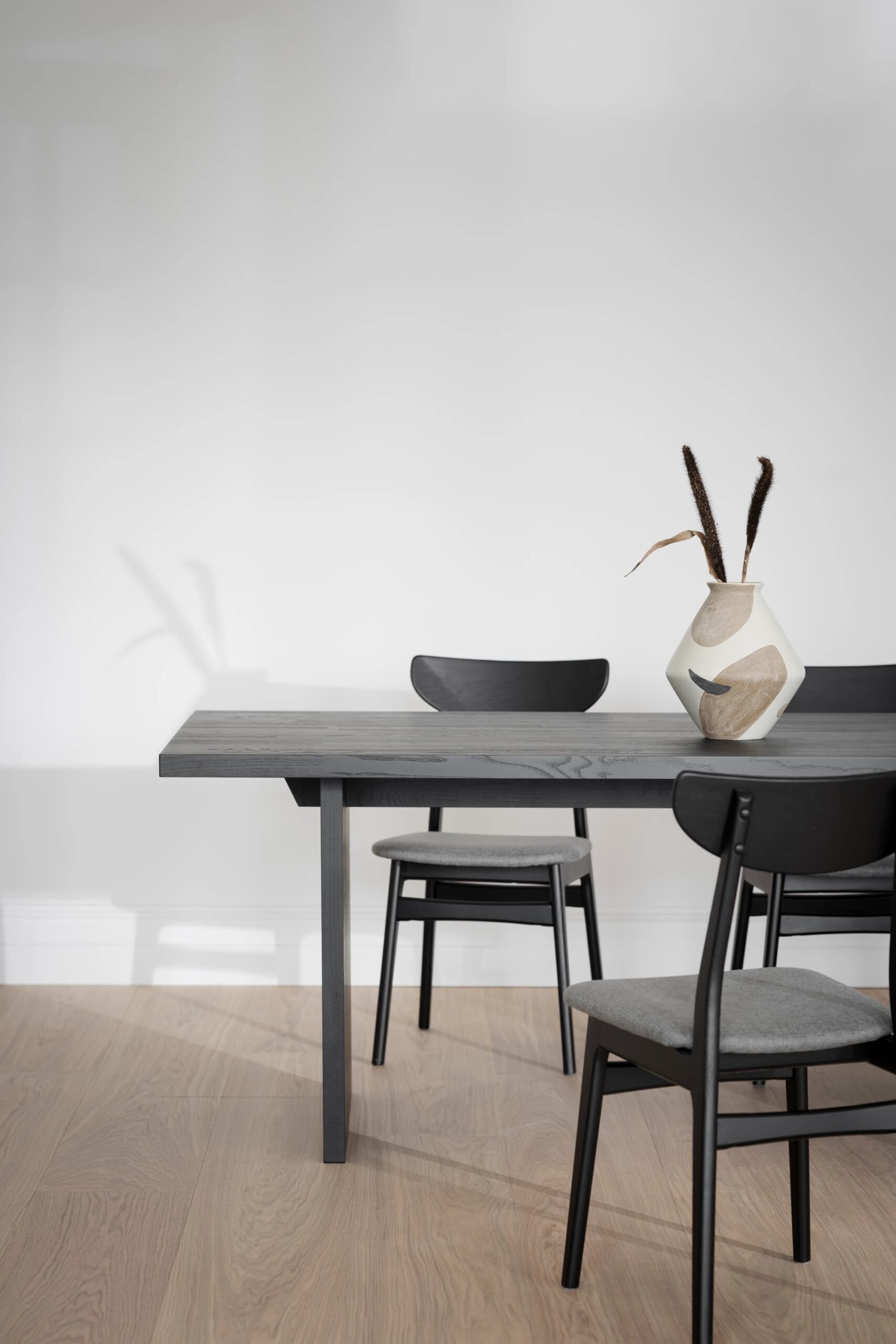 Exklusiva Emmett matbord i svartlackad massiv ask består av 100 % FSC-certifierat europeiskt trä. Den rejäla bordsskivan vilar på två stabila massiva ben. Bordet har tyngd och utstrålar exklusivitet och stabilitet vilket gör det extra passande för härliga middagar i matsalen eller i den öppna planlösningen. Att bordet är tillverkat av 100 % FSC-certifierat trä innebär att allt trä kommer från ett ansvarsfullt skogsbruk som tar hänsyn till människor och miljö. Finns i flera färger.