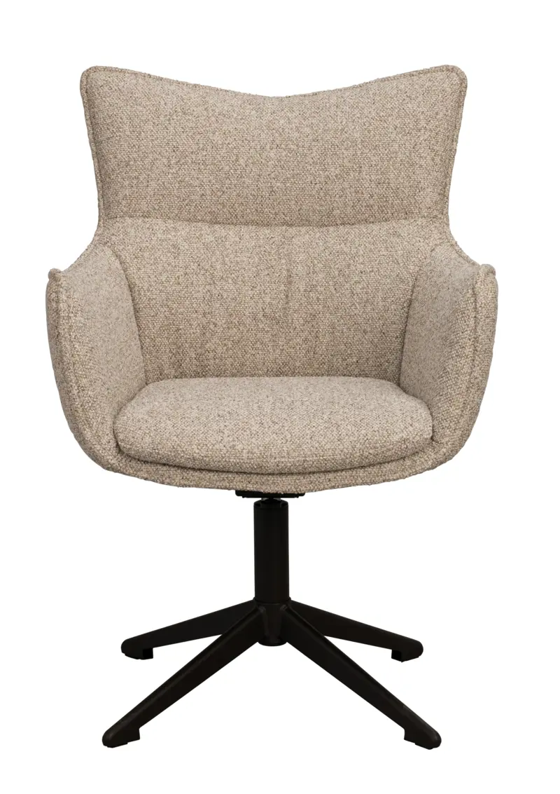 Det mörkbruna metallunderredet tillför en elegant kontrast till den mjuka formen och kombinerar design med praktisk funktionalitet. Tack vare både snurr- och gungfunktionen blir stolen följsam och flexibel, vilket gör den enkel att anpassa efter situation och rörelse. Denna flexibilitet ger dessutom en mer dynamisk känsla till rummet och gör Fresno till ett naturligt val i flera miljöer.
