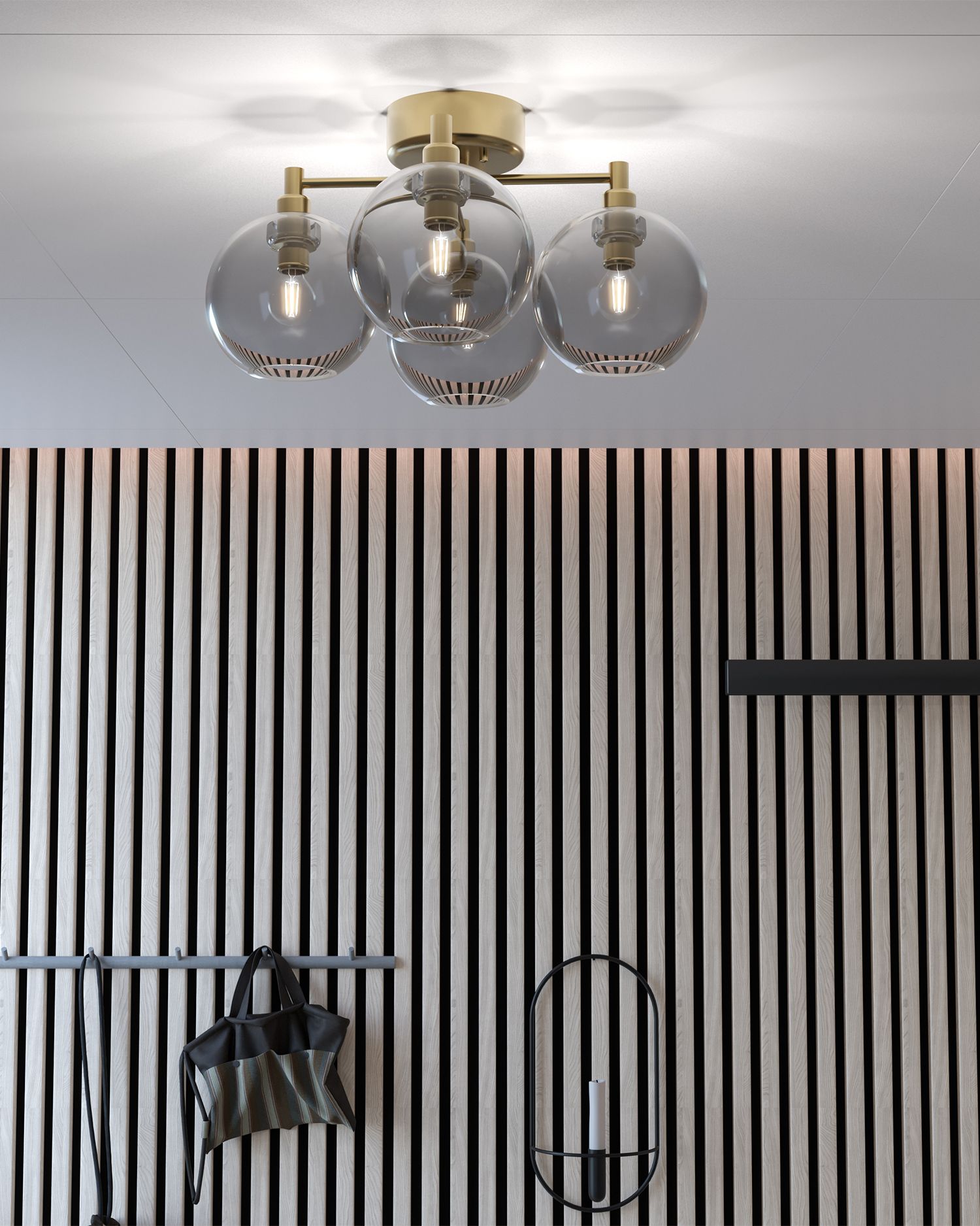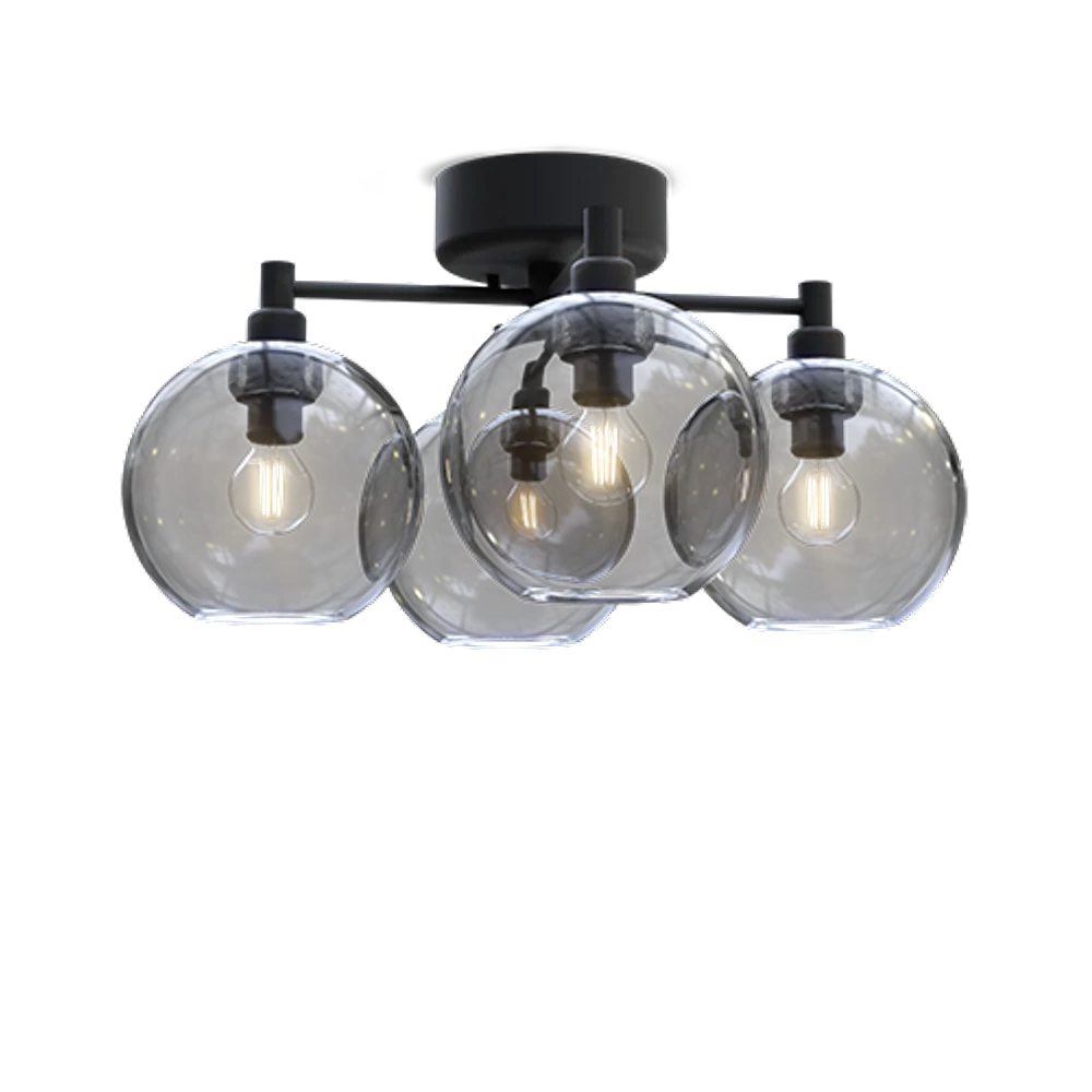 Gloria Plafond är enkel och stilren taklampa med fyra runda lampskärmar i munblåst glas. Den sprider ett mjukt och vackert ljus i rummet och är särskilt designad för att använda vackra filamentglödlampor. Denna plafond passar i de flesta rum och är särskilt lämplig för ditt sovrum. Den är dimbar för att skapa den perfekta atmosfären, och den är enkel att montera med krokupphäng. Observera att ljuskällor inte ingår. Denna modell har en diameter på 46 cm och använder E14-socklar med max 25 watts effekt. Den är tillverkad med klarglas och finns i fler färg, vilket gör den till ett smakfullt tillskott till ditt hem. Gloria Plafond finns även i en mindre modell med tre glasskärmar, modell 2010.