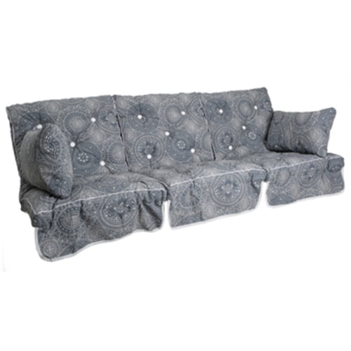 Hammockset med låg rygg i flock med vita knappar. Dynorna är boxsydda och kederlist med baksida i PVC. Det sitter snören bakom dynan som gör det möjligt att knyta fast dem i hammocken. Det ingår 3 dynor & 2 sidor kuddar i setet.