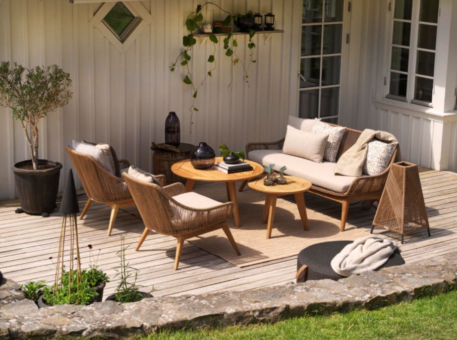 Hassel - Tidlös design i en varm och inbjudande stil, dekorativt flätad och en klassisk stomme i teak. Sittdynor medföljer. Hög flexibilitet: använd egna dynor till ryggen och förnya stil och design när andan faller på.