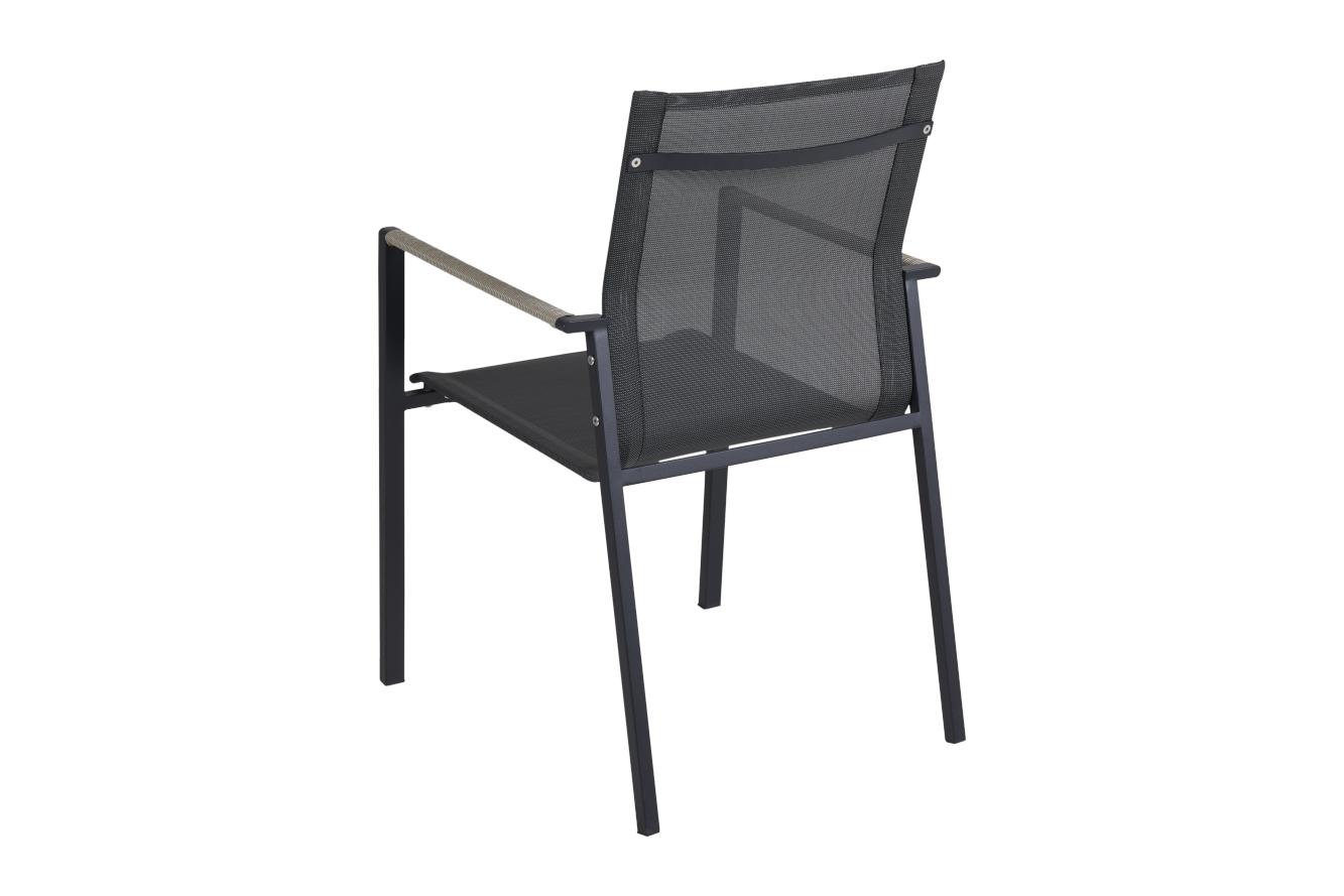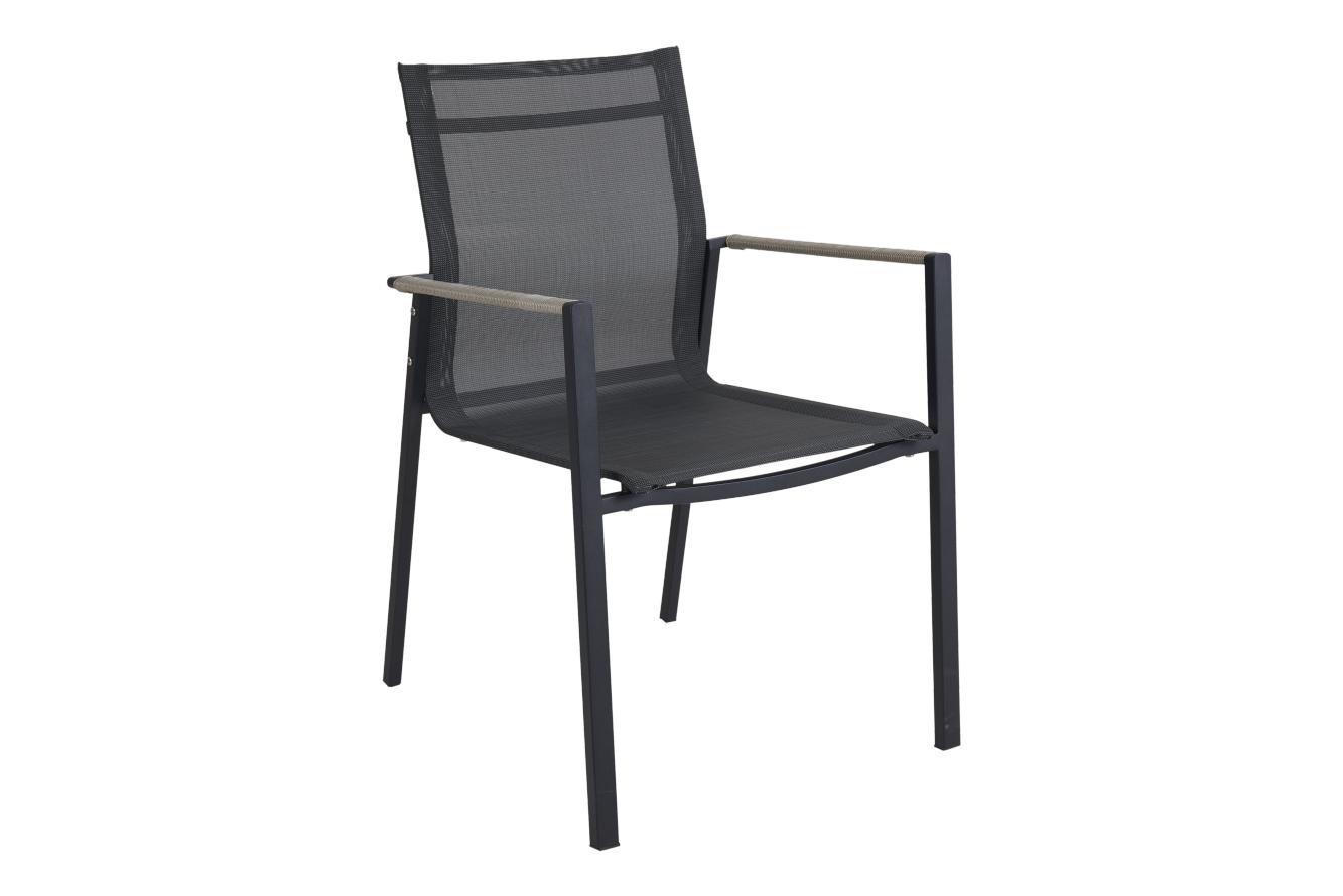 Lyra är en modern och mycket sober loungegrupp i en härlig blandning av material. Gruppen är oerhört bekväm tack vare de tjocka dynorna med högdensitetsskum. De är klädda med fodrat olefintyg som har en vattenavvisande beläggning på insidan. Stommen består av svart pulverlackerat rostfritt stål (304) med vackra detaljer av konstrotting på armstöden.