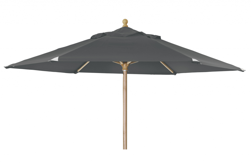 3 m parasoll av FSC-märkt trä (Sycamore) med mattlackerad yta. 2-delad stång. Vackra läderskoningar och väv av 250 gr polyester. Ø 45 mm stång.