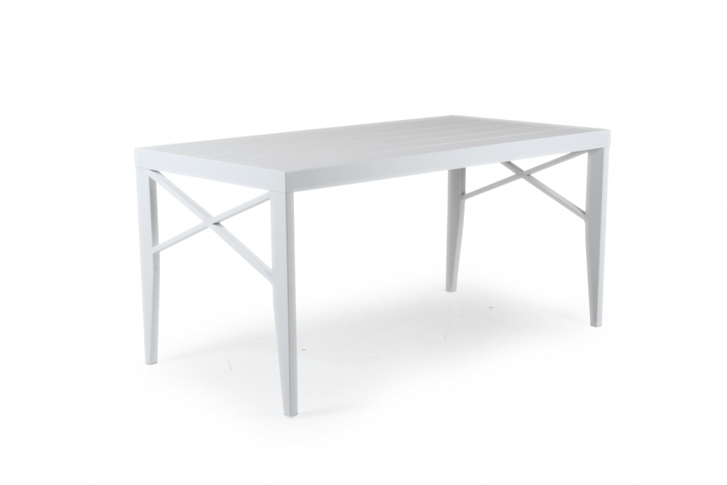 Klassisk design - inspirerad av tidlösa möbler med skärgårdsskänsla. En vit aluminiumgrupp med vackert formade detaljer som kryss i ryggen, avsmalnande ben och dynor i olefintyg i den nya kulören midnight blue. Finns som 2-sits soffa. fåtölj samt soffbord med präglade alumiuniumlammeler på toppen.