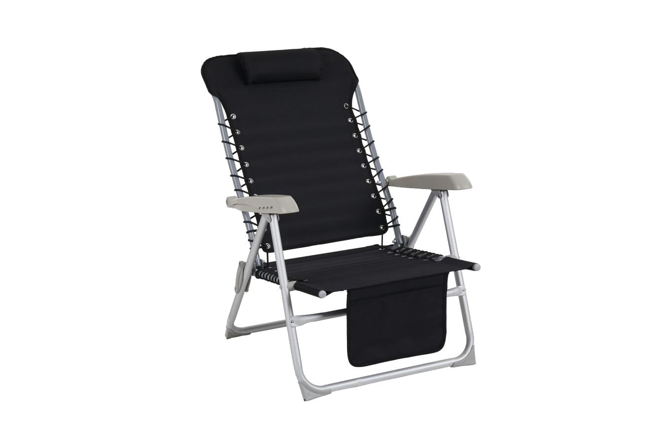 Nätt och stapelbar strandstol med aluminiumstomme och slitstark polyester. Ficka framtill.