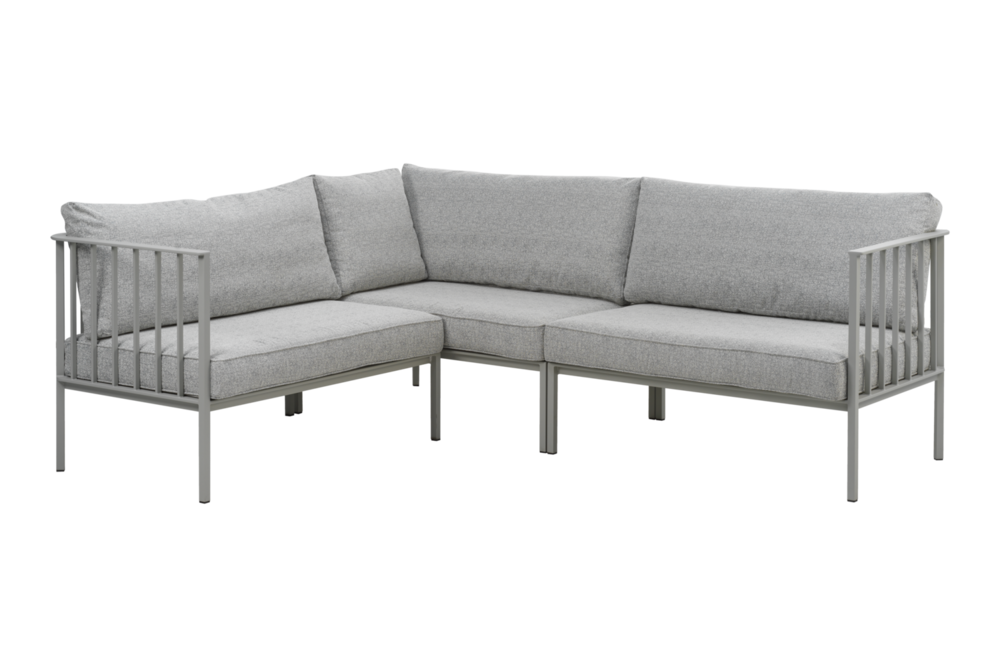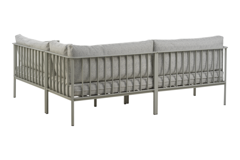En renodlad, modern sofflösning med smart modulflexibilitet – med en fantastisk komfort. Alla delar levereras i en kartong för enkel hantering och kan staplas i varandra för te.x. smidig vinterförvaring. En robust aluminiumram bär upp generösa sitt- och ryggdynor, fyllda med syntetdun för en mjuk men stödjande känsla. Designen i staketstil tillför karaktär, och mittenmodulen fungerar lika bra fristående som i kombination. Finns i vänster-, höger- och mittmodul.