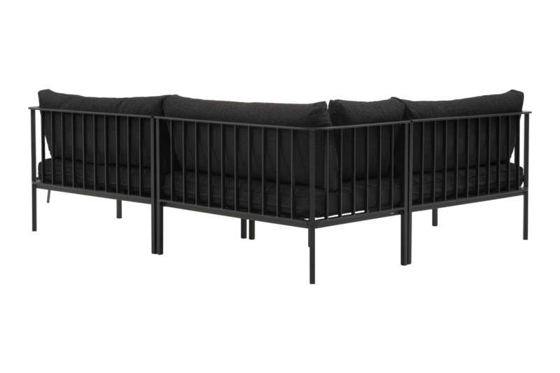 En renodlad, modern sofflösning med smart modulflexibilitet – med en fantastisk komfort. Alla delar levereras i en kartong för enkel hantering och kan staplas i varandra för te.x. smidig vinterförvaring. En robust aluminiumram bär upp generösa sitt- och ryggdynor, fyllda med syntetdun för en mjuk men stödjande känsla. Designen i staketstil tillför karaktär, och mittenmodulen fungerar lika bra fristående som i kombination. Finns i vänster-, höger- och mittmodul.