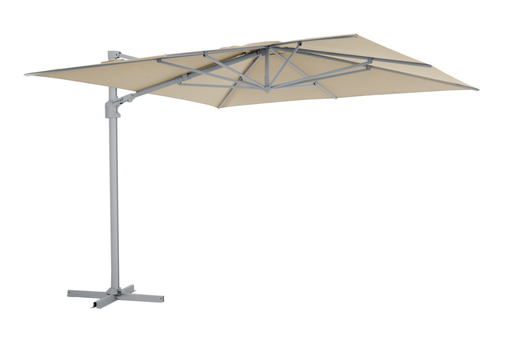 Vinovo är ett fristående parasoll med ett 250 g kapelltyg (solutiondyed) aluminiumstativ med vev, lutning och steglös kontroll för enkel justering. Basen är inkluderad men måste förankras med parasollfotsvikter eller liknande.
