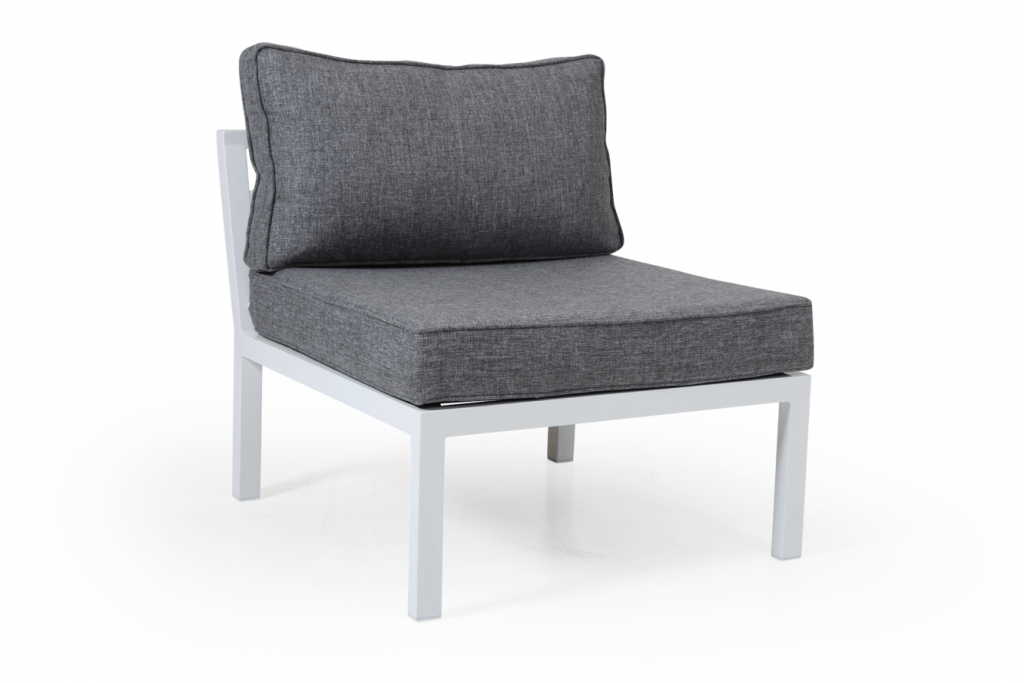 Weldon - en ny kollektion aluminiummöbler med matt finish. De byggbara delarna har allvädersdynor - perfekt för Nordiskt klimat. I gruppen ingår även en flyttbar mittdel & ett soffbord.